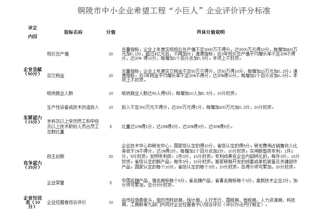 附件:1、銅陵市中小企業(yè)希望工程“小巨人”企業(yè)評價(jià)評分標準