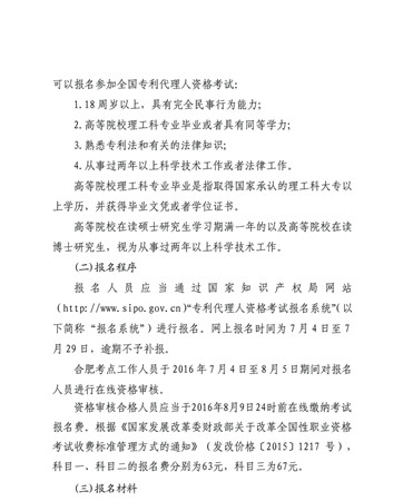 附件:安徽省知識產(chǎn)權局關(guān)于2016年全國專(zhuān)利代理人資格考試合肥考點(diǎn)報名工作的通知